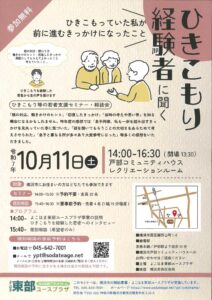 ひきこもり等の若者支援セミナー・相談会「ひきこもり経験者に聞く ~ひきこもっていた私が前に進むきっかけになったこと~」