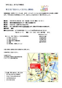 神経発達症(自閉症スペクトラム症、ADHD、LD等)とともに生きる会員の方々のお話しを聞き、自分らしい生き方について考える。