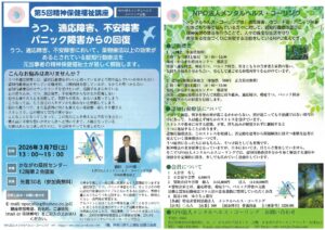 第5回精神保健福祉講座「うつ、適応障害、不安障害、パニック障害からの回復」